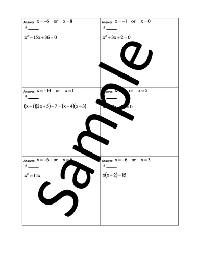 Solving Quadratic Equations: Worksheets with Answers Mathster is a fantastic resource for creating online and paper-based assessments and homeworks. They have kindly allowed me to create 3 editable versions of each worksheet, complete with answers. Worksheet Name. 1. 2. 3. Quadratic Equations - Basic Factorisation. 1. 2.