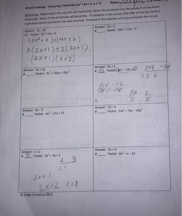 Solved Circuit Training-Factoring Trinomials (ax, bx + c, a ...