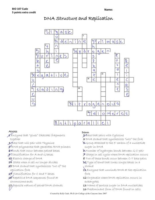 Dna structure and replication worksheet key. Join LiveJournal Password requirements: 6 to 30 characters long; ASCII characters only (characters found on a standard US keyboard); must contain at least 4 different symbols; Nucleus - Definition and Examples - Biology Online Dictionary Nov 03, 2021 · It is the process of creating a copy of DNA into mRNA through the help of the enzyme RNA polymerase. Although RNA polymerase traverses the DNA template strand from 3′ → 5′, the coding (non-template) strand is usually used as the reference point. Hence, the process proceeds in the 5′ → 3′ direction, like in DNA replication. Molecular Structure of Nucleic Acids: A Structure for ... In 1951, Pauling published the structure of the alpha helix, a fundamentally important structural component of proteins. In early 1953, Pauling published a triple helix model of DNA, which subsequently turned out to be incorrect. Both Crick, and particularly Watson, thought that they were racing against Pauling to discover the structure of DNA. DNA and RNA Basics: Replication, Transcription, and Translation Jun 22, 2021 · Replication: Doubling Up on DNA. Illustration from A&P 6. Replication of a cell’s DNA occurs before a cell prepares to undergo division—either mitosis or meiosis I. It takes place in three(ish) steps. DNA unwinds from the histones. An enzyme called DNA helicase opens up the helix structure on a segment of DNA, breaking the bonds between the ...