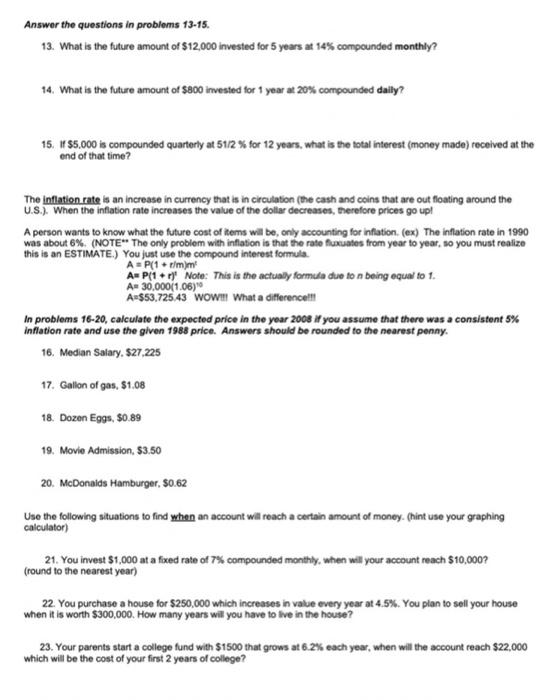 Compound interest worksheet answers. About Our Coalition - Clean Air California About Our Coalition. Prop 30 is supported by a coalition including CalFire Firefighters, the American Lung Association, environmental organizations, electrical workers and businesses that want to improve California’s air quality by fighting and preventing wildfires and reducing air pollution from vehicles. IXL | Learn Algebra 1 Set students up for success in Algebra 1 and beyond! Explore the entire Algebra 1 curriculum: quadratic equations, exponents, and more. Try it free! Lifestyle | Daily Life | News | The Sydney Morning Herald The latest Lifestyle | Daily Life news, tips, opinion and advice from The Sydney Morning Herald covering life and relationships, beauty, fashion, health & wellbeing The Power of Compound Interest: Calculations and Examples Jul 19, 2022 · Compound interest (or compounding interest) is interest calculated on the initial principal and also on the accumulated interest of previous periods of a deposit or loan . Thought to have ...