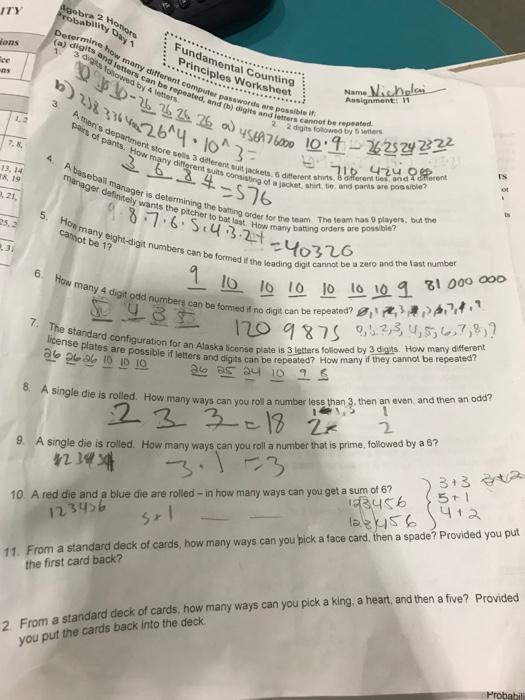 Fundamental Counting Principle Activities Teaching Resources | TPT The Fundamental Counting Principle Digital Activity is a self-checking mystery puzzle that is perfect for engagement and is no prep on your part. This activity is made in Google Sheets and allows students to practice finding the number of outcomes for given situations using the Fundamental Counting Principle with 10 practice problems. Prime Numbers from 1 to 1000 - Complete list - BYJUS Prime numbers from 1 to 1000 will include the list of primes, that have only two factors, i.e. 1 and the number itself. To find the prime numbers from 1 to 1000, we need to check if the number is a natural number and has no positive divisor other than 1 and itself. Achiever Papers - We help students improve their academic … Professional academic writers. Our global writing staff includes experienced ENL & ESL academic writers in a variety of disciplines. This lets us find the most appropriate writer for any type of assignment. Fundamental counting principle worksheet with answers pdf View Worksheet 1 Fundamental Counting Principle. pdf from MATH 30 at Western Canada Senior High School. Math 30IB Permutations and Combinations Sheet #1 Fundamental Counting Principle Name: 1. A gift. These algebra 1 worksheets with answers pdf help kids to check the answers and are useful to practice the algebraic equations.