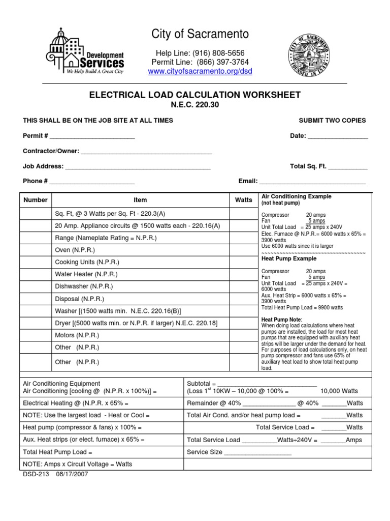 Nec load calculation worksheet