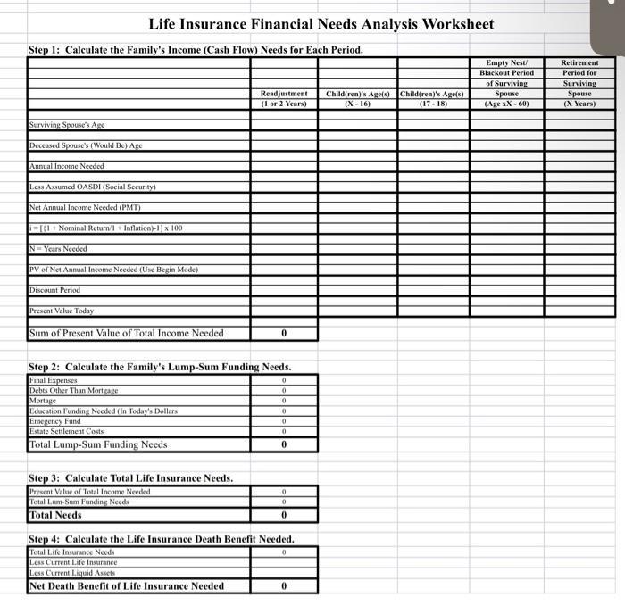 Life insurance needs analysis worksheet. Life Insurance Needs Analysis Worksheet - Calculators How Much Life Insurance Does Your Family Need. Buying life insurance to provide for your family in the event of your death is one of the most responsible decisions you can make. With so many variables to consider, it's important to understand how much coverage you require and what type of policy suits your needs best. You can assess your needs ... Adolescent Health | HHS Office of Population Affairs In this resource, OPA describes research that demonstrates the importance of gender-affirming care as well as common terms and services. For more information about LGBTQI+ health needs, access to health services, and addressing health disparities, visit LGBTQI+ Health & Well-being. American Family News Aug 02, 2022 · American Family News (formerly One News Now) offers news on current events from an evangelical Christian perspective. Our experienced journalists want to glorify God in what we do. FEGLI Calculator - U.S. Office of Personnel Management Calculate the premiums for the various combinations of coverage, and see how choosing different Options can change the amount of life insurance and the premiums. See how the life insurance carried into retirement will change over time. Instructions. Enter the information below and click on the Calculate button to get a report on those choices.