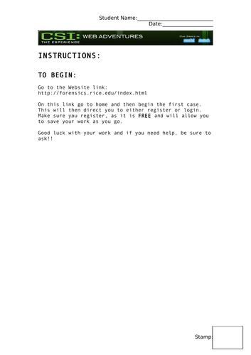 Csi web adventures worksheet answers