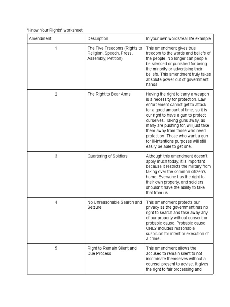 Know your rights worksheet
