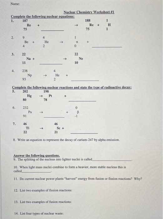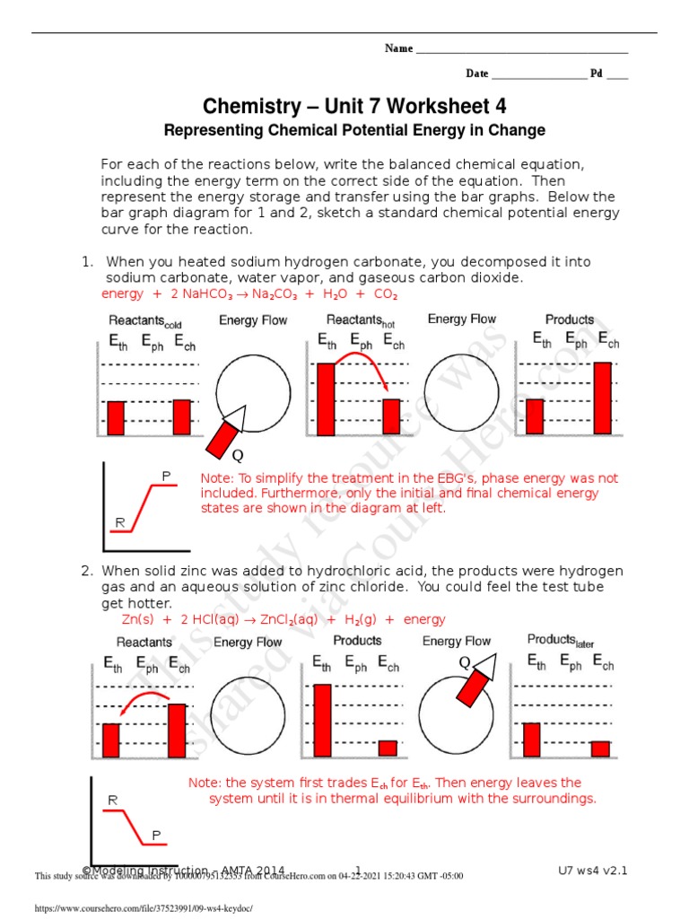 Chemistry unit 7 reaction equations worksheet 1 answers