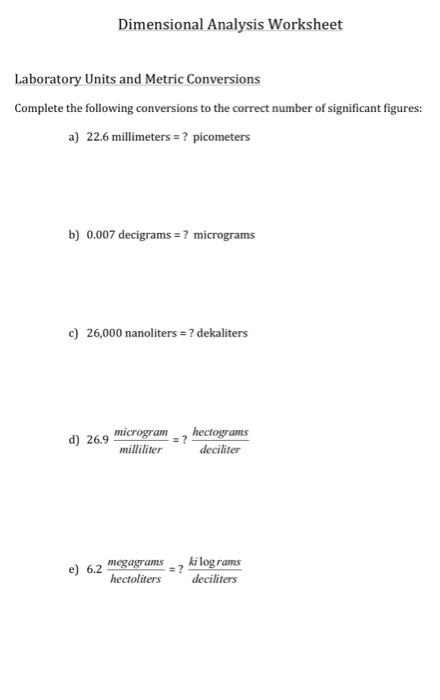 Metric Conversions and Dimensional Analysis Worksheet | TpT This is a listing for a 3 page worksheet over Metric Conversions and Dimensional Analysis. The metric conversions are for larger and smaller prefixes than ... Using Dimensional Analysis to Solve Problems Using Cubic Volumes Metric Conversion Using Dimensional Analysis Worksheet. This worksheet is designed to give you practice using dimensional analysis for converting from one ... Dimensional Analysis Worksheet 2 1 m. 100 cm. 1 m ! ! ! ! ! Instructions: Metric Measurement Conversion. Complete the following metric equalities.