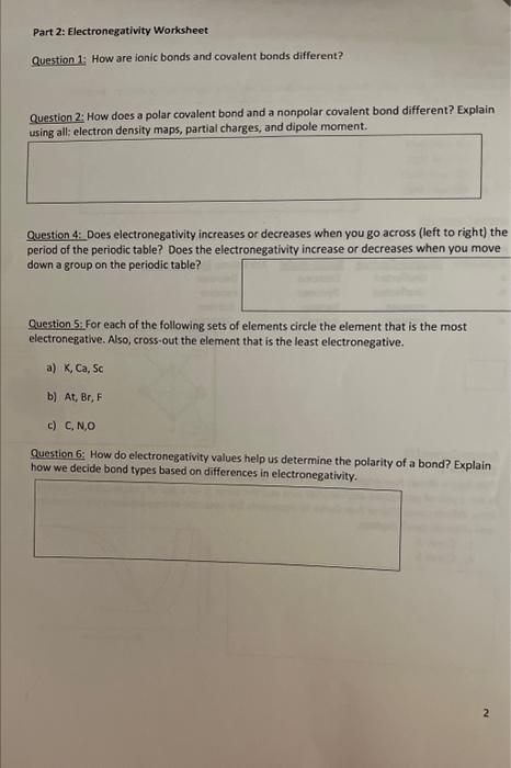 Worksheet polarity of bonds answers